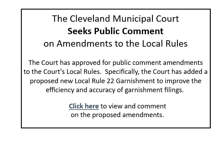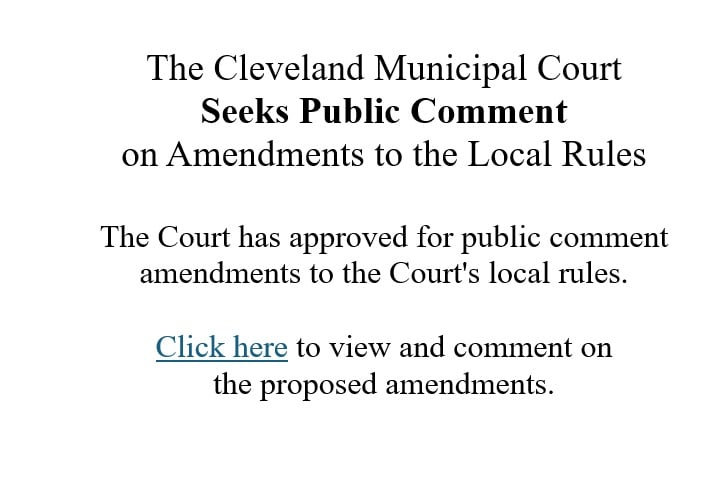 Cleveland Municipal Court, 1200 Ontario Street, Cleveland, Ohio 44113-1610 Follow Us On Social Media: